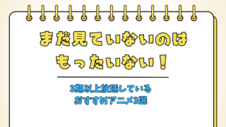 home 2025.12.27 NEW!新着記事 まだ見てないのは勿体ない!3期以上放送しているおすすめアニメ3選 3期以上放送しているアニメを探してる方に向けた個人的におすすめできるアニメを3つ紹介した記事になります。それぞれのアニメのおすすめポイントを分かりやすく解説しているので、見たことない人がこのアニメ面白そう!と興味を持てる内容になっています。 2026.01.192026.01.20 新着記事一覧 人気記事 【徹底考察】なぜアニメの検索サジェストには「ひどい」「つまらない」等のネガティブワードが多いのか? 2025.12.262026.01.02 異世界アニメはなぜ増え続ける?「量産」される3つの業界的理由と今後の行方 2026.01.012026.01.02 【ブルーロックに学ぶ】成果を出すための「正しいエゴイズム」とは? 2026.01.15 お問い合わせ 氏名 メールアドレス 題名 メッセージ本文 (任意)